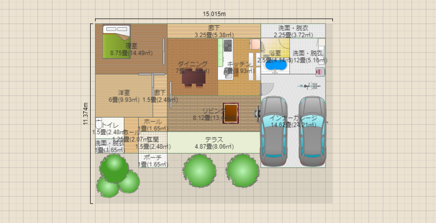平屋+ロフト 27坪(9×12)南・東・北道路