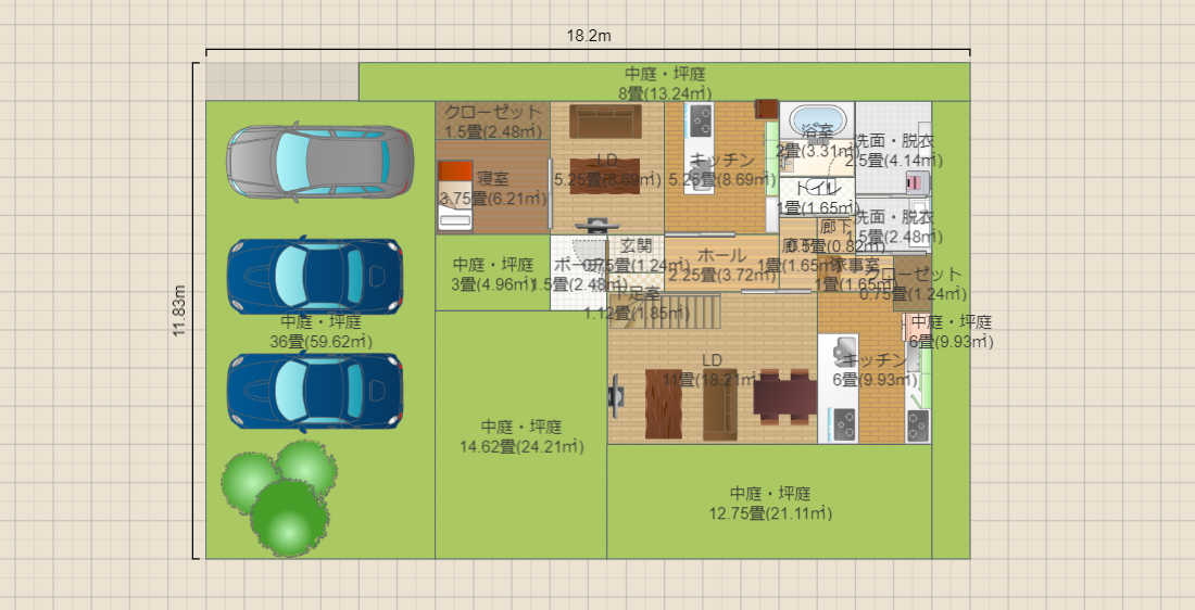 動線・中庭3.7畳の平屋3LDK(20畳)(T2)13.1x9.5 R5