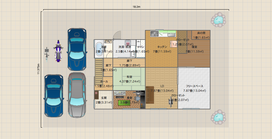 【家族4人】【ガレージ+和室】【正方形】