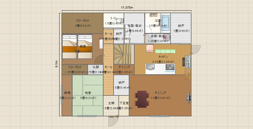 納戸か部屋か///ダイニングこんなに取れないヨ