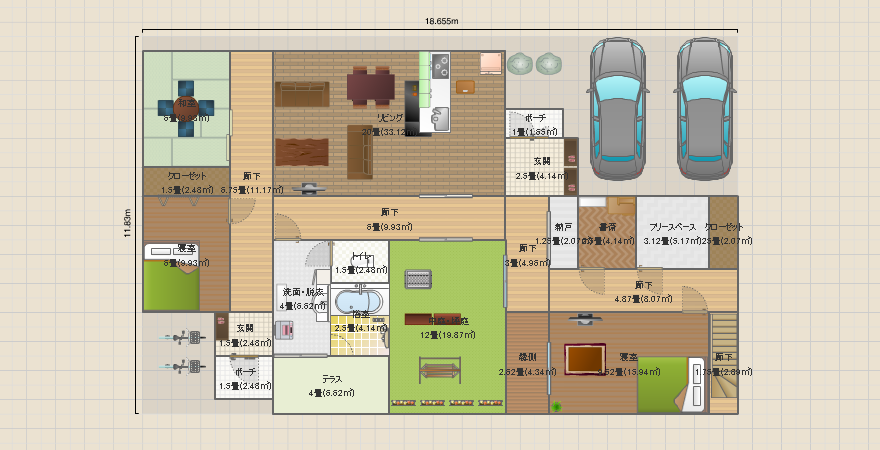 【家族4人】【ガレージ+和室】【正方形】