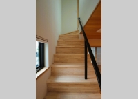 2階の唯一光が注ぐ場所を屋内物干しスペースとし、その床をガラスで造り、トップライトとして1階リビングに光を落としました。各部屋2ヵ所以上の窓とし、プライバシーを守るため周囲の環境を考慮して、窓の大きさ高さを設定しています。
