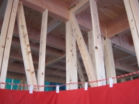 上棟式では、東白川村村長からお施主様へヒノキの柱149本の贈呈を行いました。
