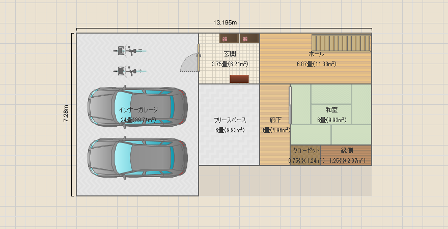 教会案佐鳴台1丁目(54名、10台)ポーチ広め、駐車場詰めない