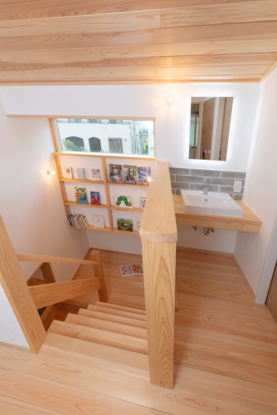 天井高を抑えたので、家の中は落ち着いた空間に感じられ、また外観はどっしりと安定感がでました。